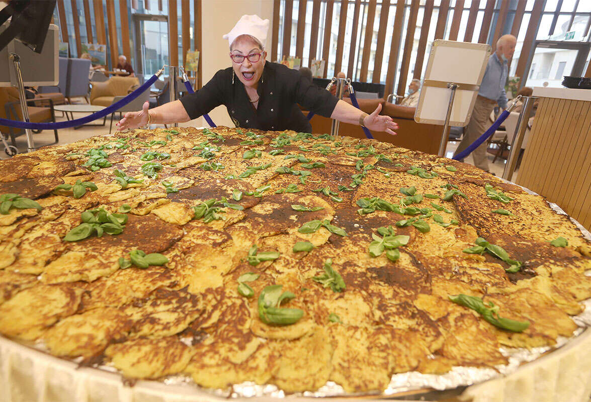 ג'נט קיסרי מבית הדיור המוגן "פאלאס מודיעין" אפתה לביבה בקוטר 1.60 מטרים • "זו לא הפעם הראשונה שאנחנו שוברים שיאי גינס"