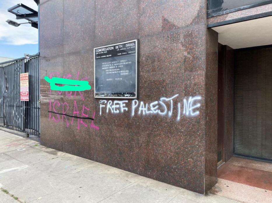 שוב מקרה של השחתת בית כנסת בארה"ב: כתובת גרפיטי אנטי-ישראלית רוססה בימים האחרונים על קיר בית הכנסת "קהילת בית ישראל" בשדרות בוורלי הילס שבלוס אנג'לס. משחיתי בית הכנסת כתבו "שחררו את פלשתין" וכן קללות נגד מדינת ישראל.