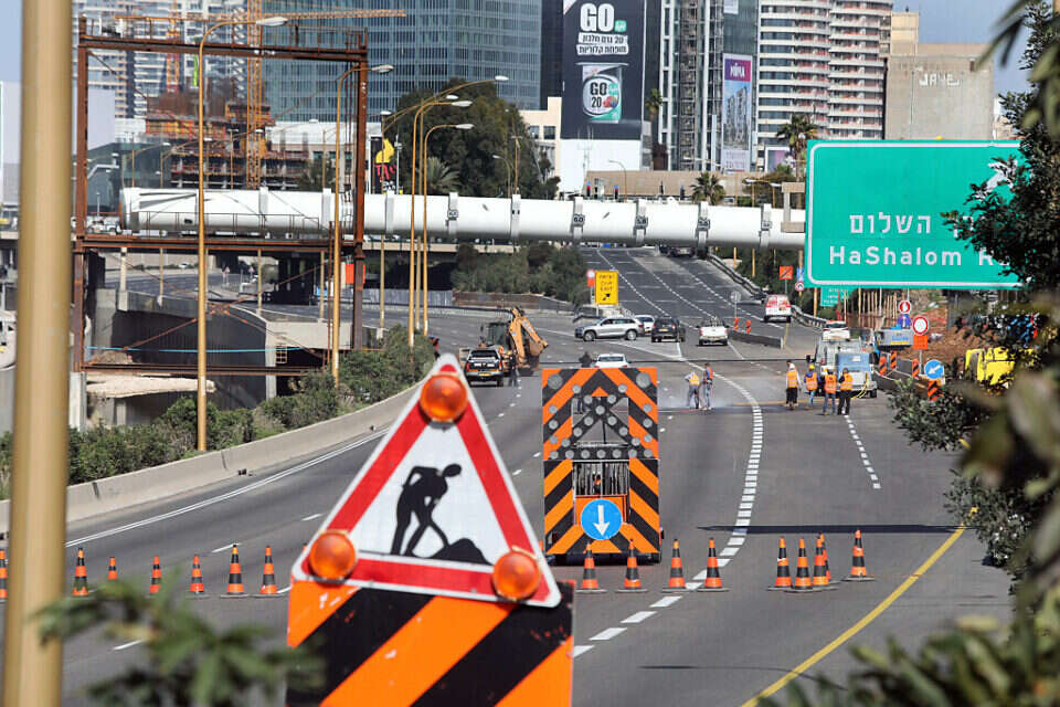 עבודות על גשר יהודית בתל אביב בשבת // צילום: גדעון מרקוביץ