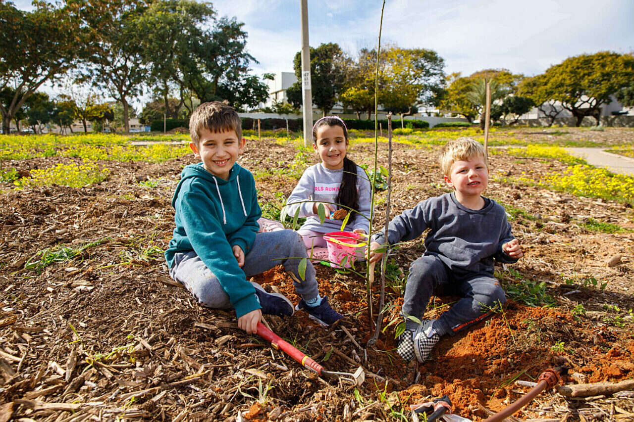 ילדים נוטעים עצים, צילום: לירון מולדובן