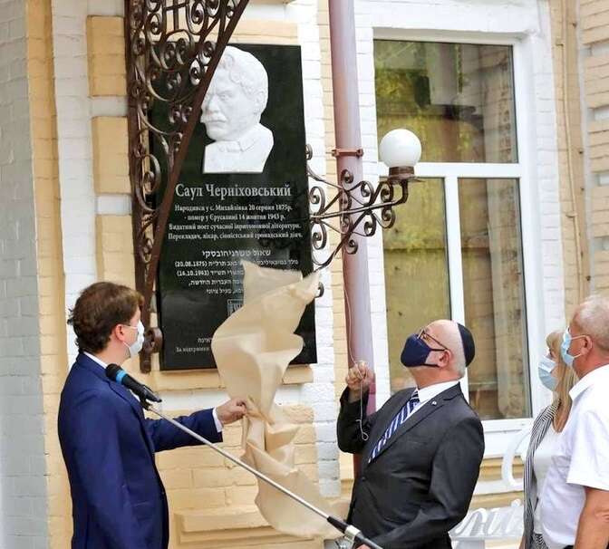 שגריר ישראל באוקראינה, הרב יואל ליאון, הסיר את הלוט מעל לוח הזיכרון בתאריך שבו צוין יום הולדתו ה-145 של טשרניחובסקי. הלוח הוקם ביוזמת ראש המועצה המקומית והרב ארנטרוי, שליח חב"ד ורבה הראשי של אזור זפרוז'יה, ובסיוע השגרירות הישראלית באוקראינה.