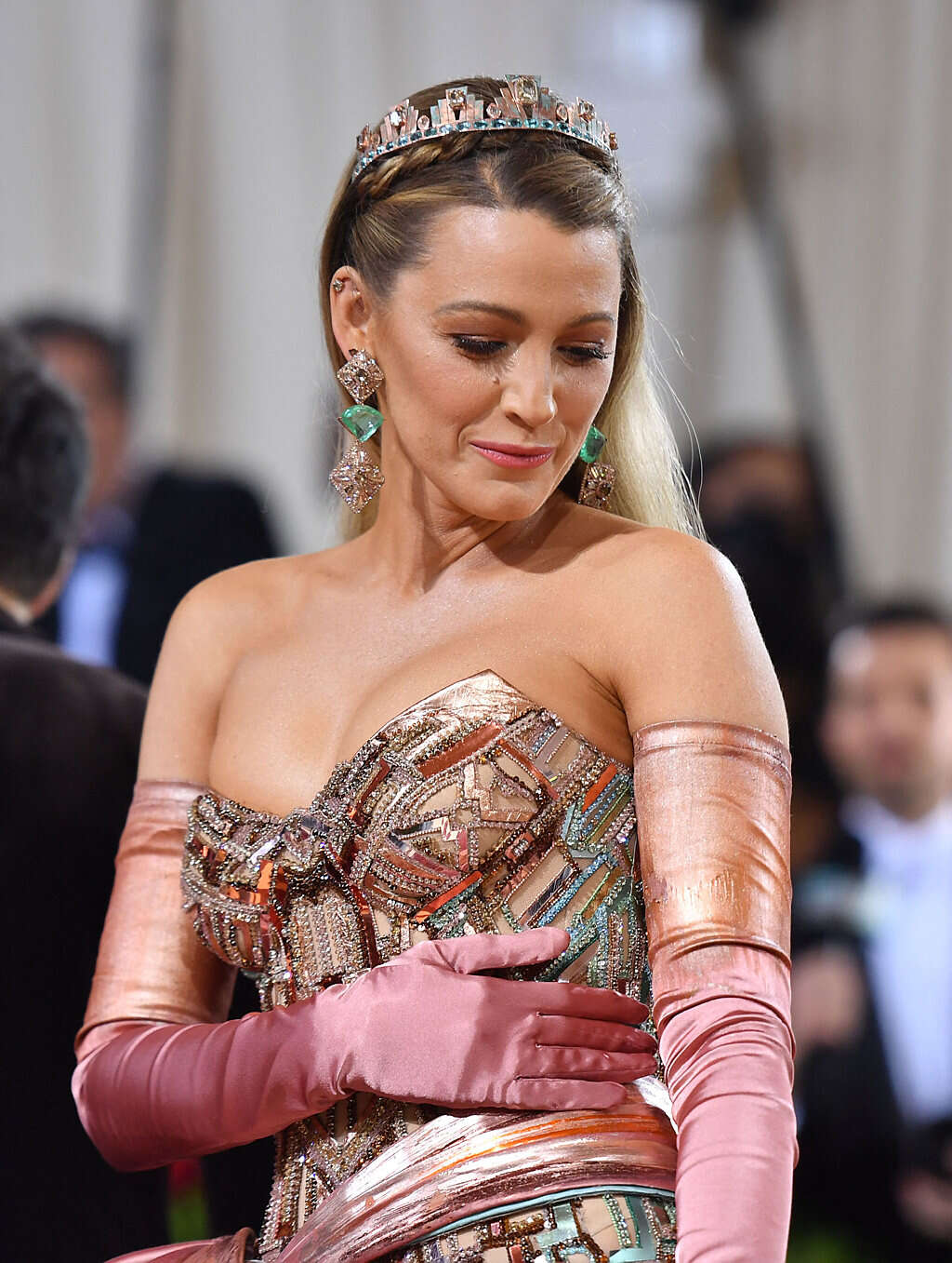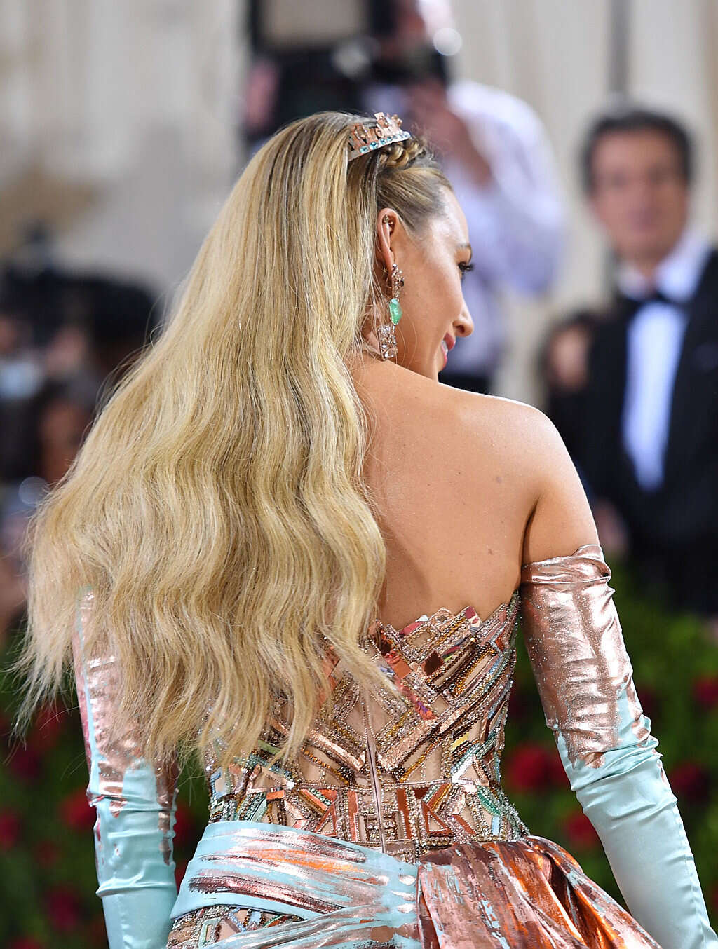 בלייק לייבלי שמספקת לנו נחת מדיי שנה, התהדרה בשמלה של ורסאצ'ה בהשראת הארכיטקטורה בניו יורק עם אינטרפטציה לפסל החירות, ובהתאם לכך גם עיצוב השיער שלה. איך להשיג את הלוק בבית? מעצב השיער ושגריר מון פלטין פרופשיונל, שמוליק טל, מסביר כי "יש לשים לב שהשיער אסוף מכמה וכמה אזורים. ראשית לוקחים את פוני השיער, יוצרים שביל לצד ובעזרת חימר מעצב לשיער מצמידים אותו לקרקפת ותופסים עם גומייה מתחת לשיער. לאחר מכן , מגובה קו הגבה אוספים את הצדדים, מצמידים לקרקפת עם החימר ומחברים אותם מתחת לשיער. על מנת ליצור את הצמה, יש לאסוף את קבוצת השיער הארוכה ביותר מאחורי האוזן, לקלוע אותה לצמה ולהלביש על ההפרדה שיצרנו קודם. לסיום, עושים פן בייביליס ומקבעים את התסרוקת עם ספריי עיצוב מקבע".