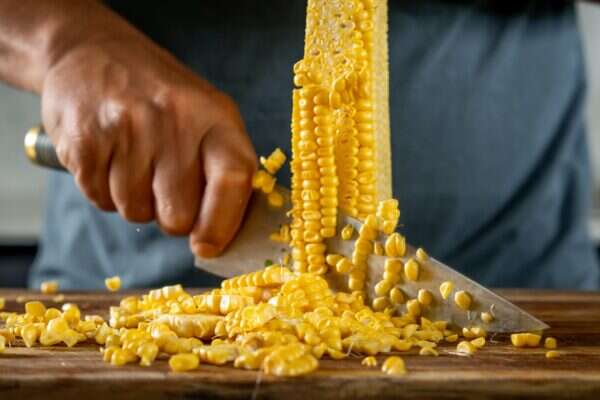 - נחתוך את גרעיני התירס עם סכין, ונעביר אותם לבלנדר יחד עם שערות התירס, והקליפות שעברו ריכוך.