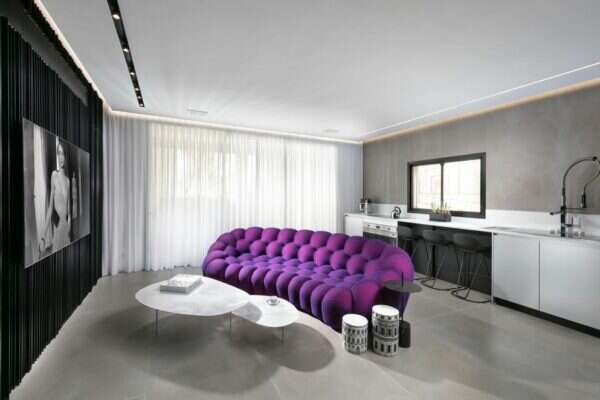 3 הספה הסגולה מהווה כתם צבע משמעותי בחלל