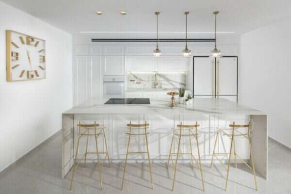 הכי אהבנו: את הידיות שנבחרו לארונות המטבח, בדרכן המעודנת הן מוסיפות רובד חשוב נוסף למראה הכללי שמתקבל.