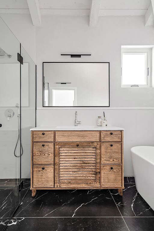 חדר הרחצה אחרי השיפוץ, צילום: מאור מויאל