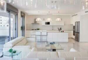 2. תאורה: לצד התאורה הפונקציונלית להארת הבית, ישנם גופי תאורה מעוצבים שהם לצורכי אווירה, כמו מנורות קיר, גופי תאורה עומדים ועוד.