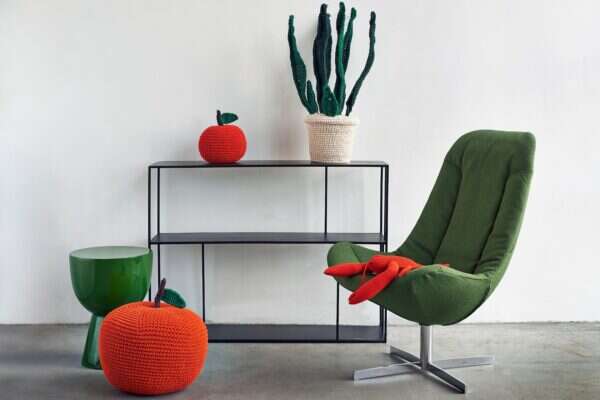 אתר House In Moda סל אחסון קטן עם פסים צבעוניים סרוג בעבודת יד 790 ש"ח במקום 930 ש"ח // צילום: יח"צ חו"ל