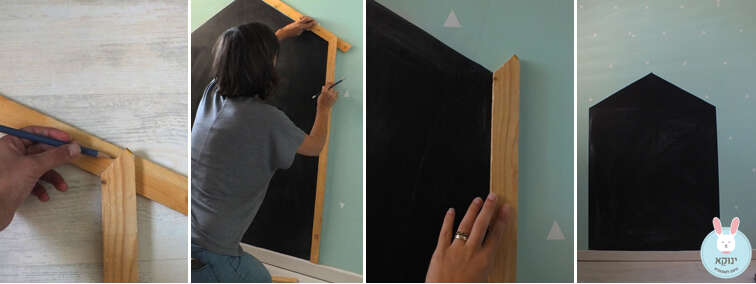 שלבים להכנת הבית ממדבקת לוח הגיר // צילום: שולמית הנדלמן