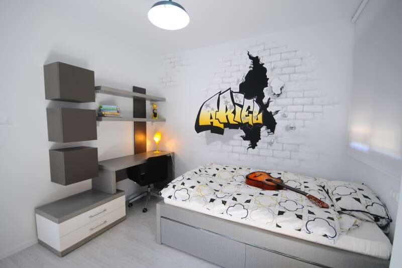 אצל אריאל, אחיה התאום של טליה, נקטה באותו עקרון כשהפעם בחרה בציור קיר מעולם הגרפיטי שילווה אותו גם כנער מתבגר. הצבעים, הרהיטים וההעמדה נבחרו ונעשו בהתאם לציור הקיר.