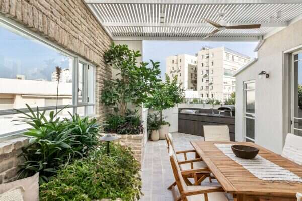 בני זוג רצו להגשים חלום של בית צמוד קרקע וקנו שטח במושב במרכז הארץ. אחרי שהבינו שמרכז חייהם נמצא בתל אביב, הם בחרו לשנות את התכנית ולרכוש דירה לשיפוץ. הבקשה העיקרית הייתה לשלב את איכויות הבית הפרטי בדירה שמצאו ולשלב בו אלמנטים בהתאמה. אמנם מדובר על דירה בקומה שביעית, אבל משרד האדריכלים, הלל אדריכלות, שהיה אמון על האדריכלות ועיצוב הפנים, בחרו לשלב בדירה איכויות רבות שמאפיינות בית פרטי. מבחינת סגנון ביקשו הדיירים חלל כפרי והעבודה האדריכלית יצקה אל הכפריות קו מעודכן ועכשווי.