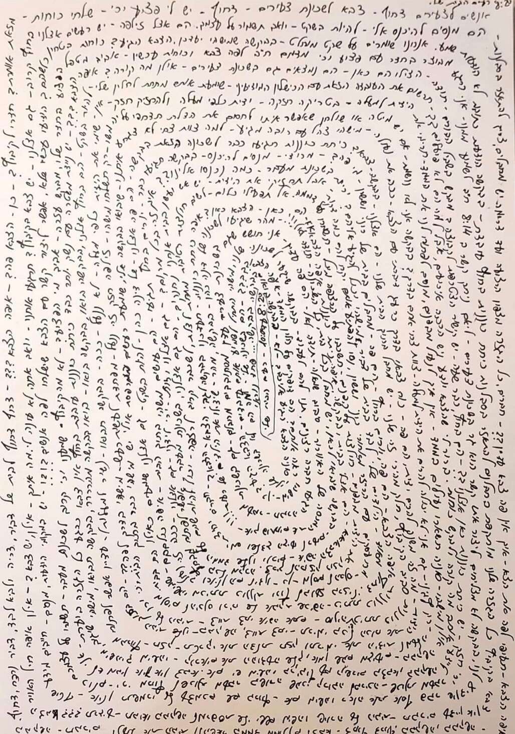 עבודת אמנות מטלטלת של עדי דרימר מקיבוץ רעים. דרימר ששהתה בממ"ד, בקיבוץ, במהלך הטבח קיבצה את כל הודעות הוואטצאפ שהתקבלו במהלך מתקפת הטרור. הספירלה בה בחרה לכתוב את ההודעות מזכירה צורת אינסופ - אין סוף לרוע, אין סוף לעצב, אין סוף לתחושת האובדן, ומשמשת תיעוד מצמרר לתופת שהתרחשה במקום.