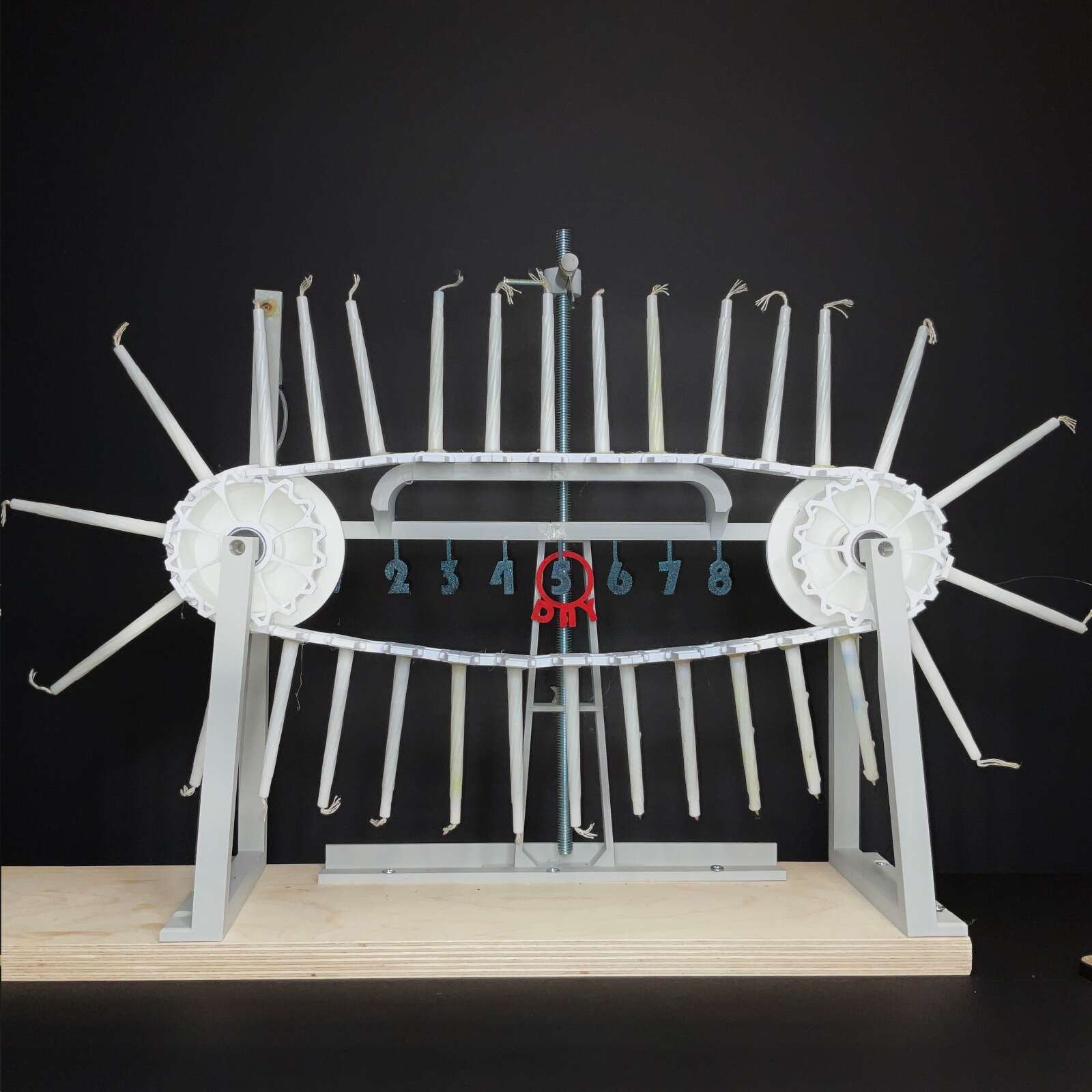 "חג חנוכה מתקיים השנה בצל המלחמה. לאור המצב וההבנה שאין אפשרות להפריד בין השניים עיצבתי חנוכייה מכנית בהשראת זחל טנק. החנוכייה מעוצבת כמכונה מודולרית בת 30 נרות הנדלקים ונכבים בהתאם לכמות הנרות הנהוגים ביום החג הרצוי. ציר המספרים מסמן את מספר הנרות הדולקים בכל רגע נתון וניתן להזזה לפי הצורך. הפרויקט התפתח מתוך תהייה של מה היא חנוכיה ונועד לבחון דרכים נוספות לבצע את טקס הדלקת הנרות".