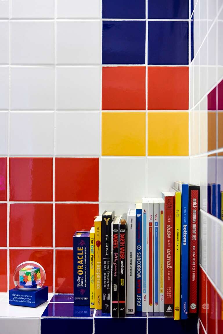אחד החלומות שבעלת הבית ביקשה להגשים היה בחללי השירותים והרחצה - שירותים בהשראת עבודותיו של פיט מונדריאן, צייר הולנדי שפעל בתחילת המאה ה-20. חדר הרחצה עוצב כדפי מחברת חשבון, שבו ניתן לכתוב על האריחים הלבנים תרגילים.