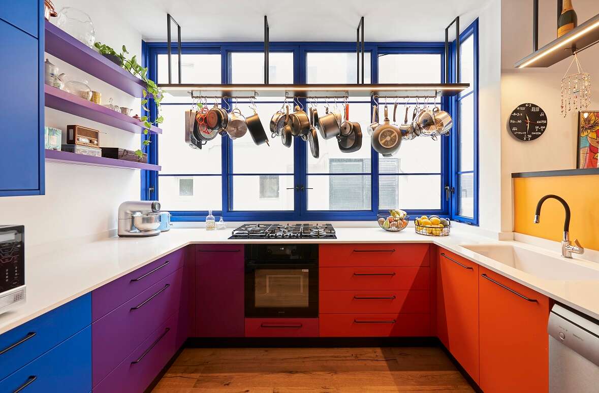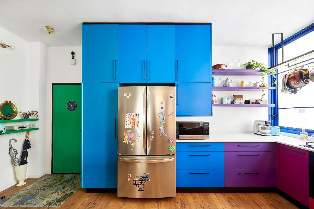 הצבע עומד במרכז הדירה. לוי תובל מסבירה שזה לא תהליך קלאסי של בניית פלטת גוונים הרמונית אלא מדובר בכל צבעי הקשת שקבלו ביטוי.