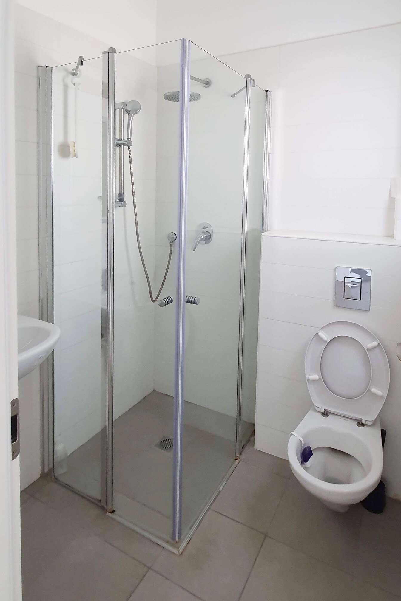 חדרי הרחצה שופצו באופן חלקי. על הריצוף המקורי הודבק ריצוף חדש בצבע שחור, בצורת משושים. המקלחון הוחלף במקלחון חדש בעל פרזול שחור.