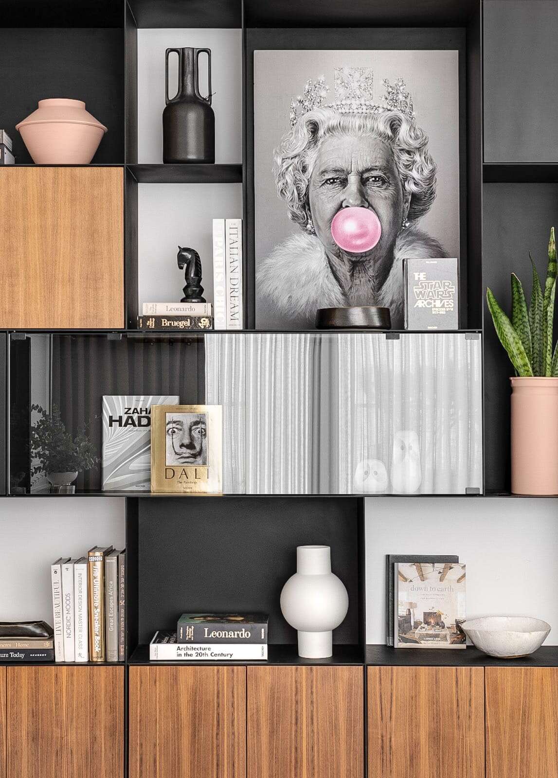מבט חלקי על ספריית עץ ומתכת בהתאמה אישית, סטודיו FifeFly, ניהול פרויקט חנן אריאל / צילום: עודד סמדר