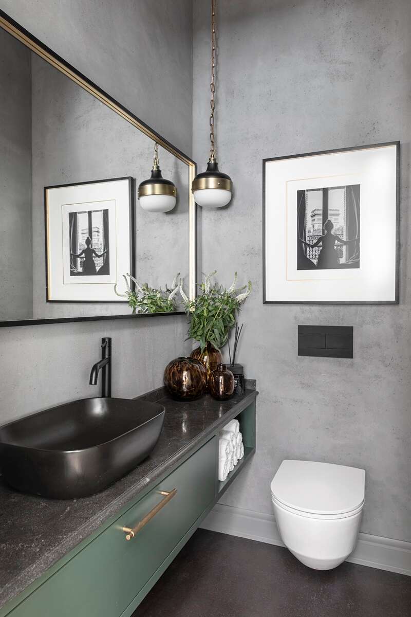 חלל שבו קיר אוניקס מואר גונב את ההצגה, כשסביבו ברזי פליז, ידיות מוזהבות ואריחי כוורת שחורים. השילוב בין לבן, שחור וזהב יוצר דרמה אלגנטית ומראה מהפנט. מי שמחפש גרסה נגישה יותר, יכול להחליף את האוניקס במראה גדולה ושנדליר שתשתקף בה - פתרון שמעניק אפקט דומה של זוהר ויוקרה.
