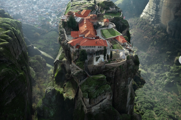 כבר במאה ה-15 ניסו נזירים ביוון לבנות לעצמם מקום שבו יוכלו לחיות באמת רחוק מהעולם - לא סתם מבודד, אלא כזה שצריך לטפס אליו עם סולמות וחבלים בלבד. כך נולד המנזר של השילוש הקדוש שבאזור מטאורה, אחד המקומות המרשימים והדרמטיים ביותר ביוון, וגם אחד הלוקיישנים הבלתי נשכחים מסרט ג'יימס בונד "לעינייך בלבד".