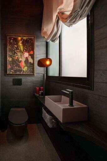 דרמה בחדר השירותים. עיצוב: שבי מזרחי, טקסטיל ELLA DECOR / צילום: ארקדי רסקין