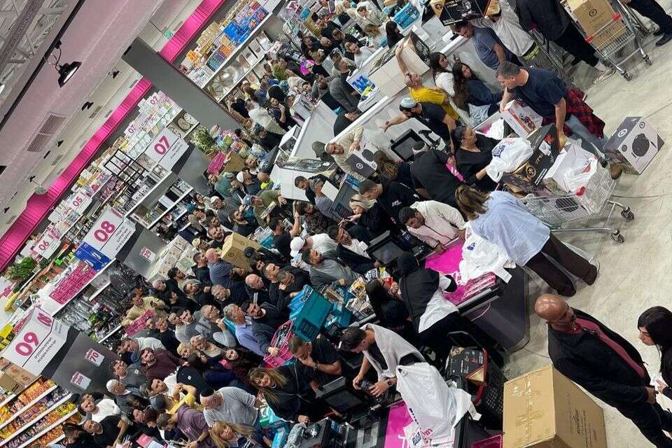 "הגעתי לסניף כבר ב-7:00 בבוקר וראיתי אנשים שממתינים לפתיחה”, הוא מספר. "כרגע החנות מפוצצת, יש עגלות מלאות, יש תור גם בחוץ, אבל זה מתקדם מהר".