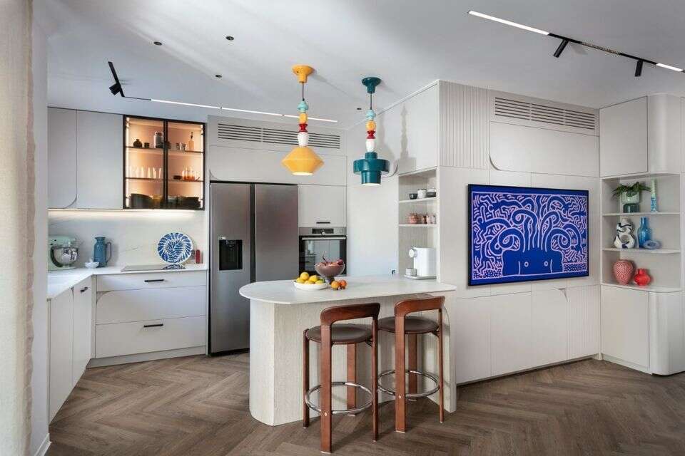 "בנוסף, אפשר לאחד פונקציות בתוך אותה חזית - למשל לשלב מסך טלוויזיה בילט-אין כחלק מהארון, כך שלא נדרש רהיט נוסף בחלל. כשהכל נטמע במעטפת אחת נקייה ורציפה, מתקבלת תחושת סדר ומרחב אמיתית, לצד ניצול מקסימלי של השטח הקיים".
