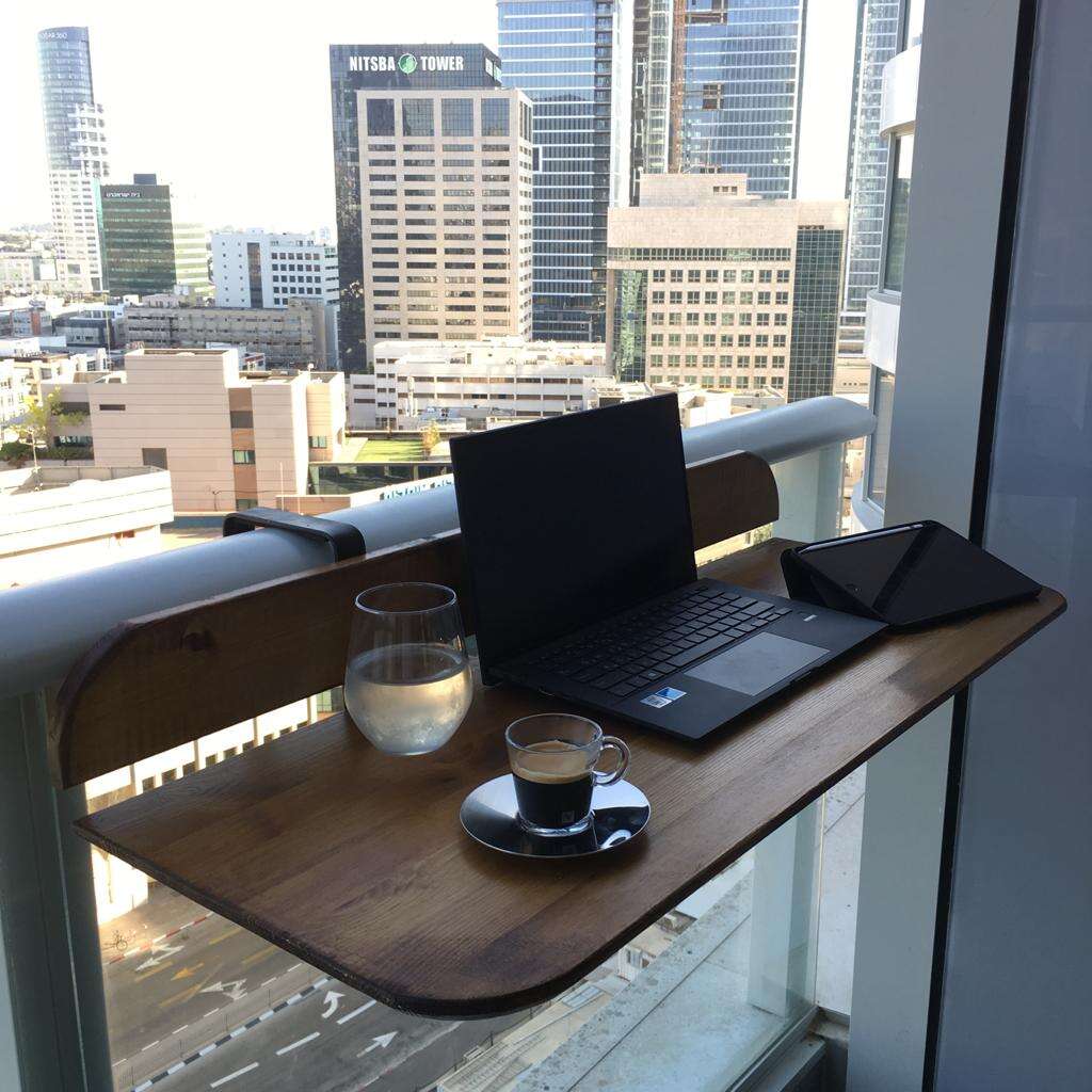 שולחן עם כיסאות הוא לא הפריט הראשון שהיינו חושבים למקם במרפסת, שלרוב קטנה, אבל בר תלוי על המעקה, כזה שאפשר להזיז ממקום למקום כשרוצים, דווקא כן.