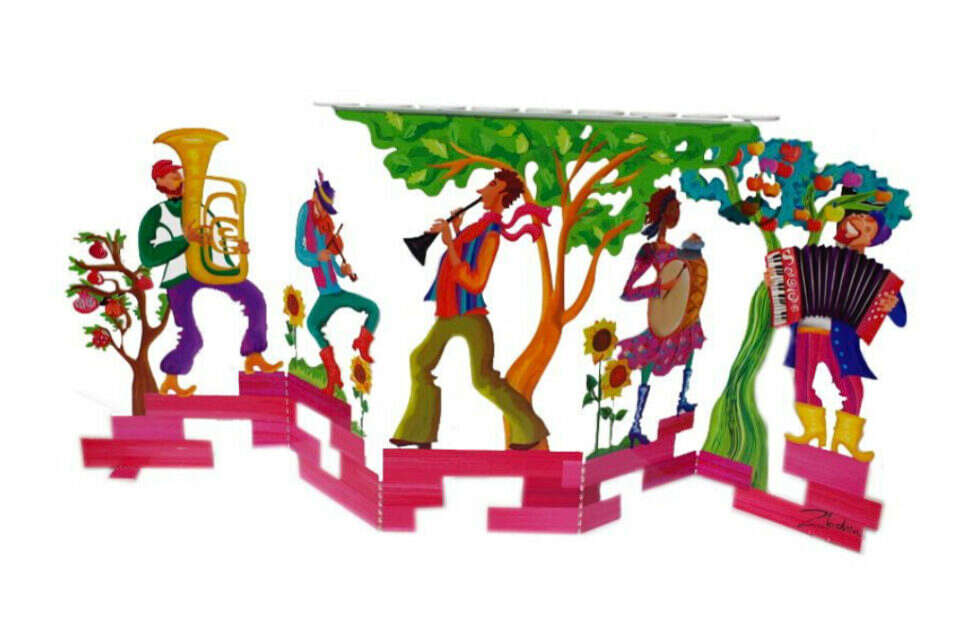 קווים לדמותן: חנוכיות מתכת בצבעוניות משמחת, מיוצרות בחיתוך לייזר ומשלבות נימה הומוריסטית שמעלה חיוך.
