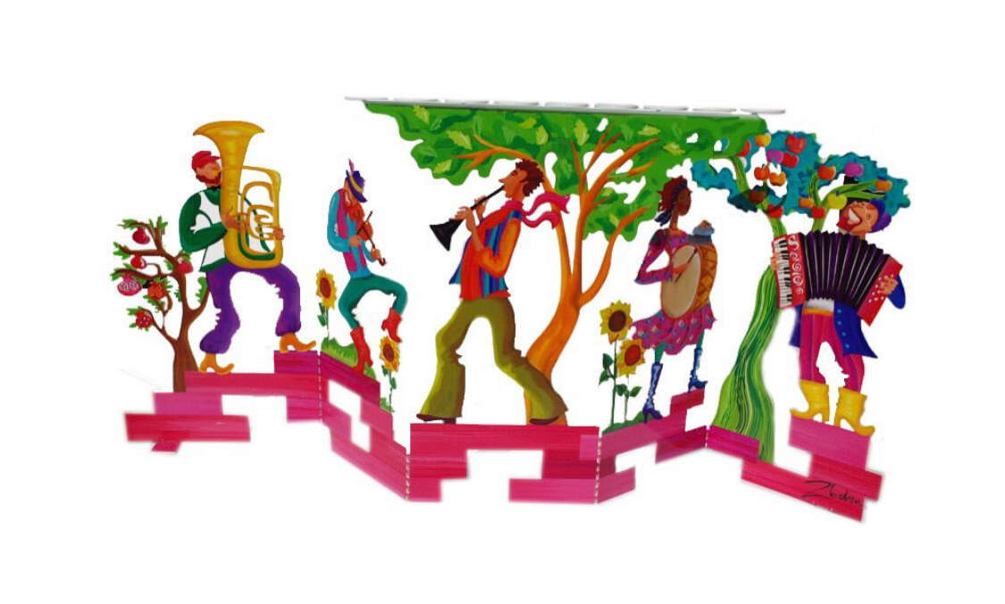 קווים לדמותן: חנוכיות מתכת בצבעוניות משמחת, מיוצרות בחיתוך לייזר ומשלבות נימה הומוריסטית שמעלה חיוך.