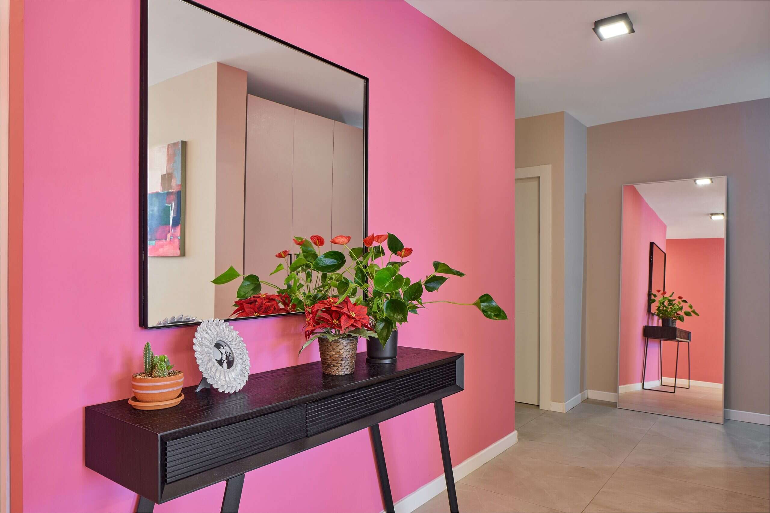 את השילוב הזה ניתן לקחת לכיוונים שונים ולשחק עם הטונים של שני הצבעים - אדום מעושן עם ורוד עתיק, אדום אש עם ורוד פוקסיה ועוד. כשמדובר בחללי הבית, הביטוי שיקבל השילוב הצבעוני הזה יכול להיות במינונים שונים: החל משילוב של פרחים שמדגישים את השילוב נגיעה מרומזת, דרך ספר עם כריכה בגוונים הללו שיושב על השולחן, קופסה מעוצבת ועד קירות שלמים שמביאים לידי ביטוי רחב יותר את השילוב.