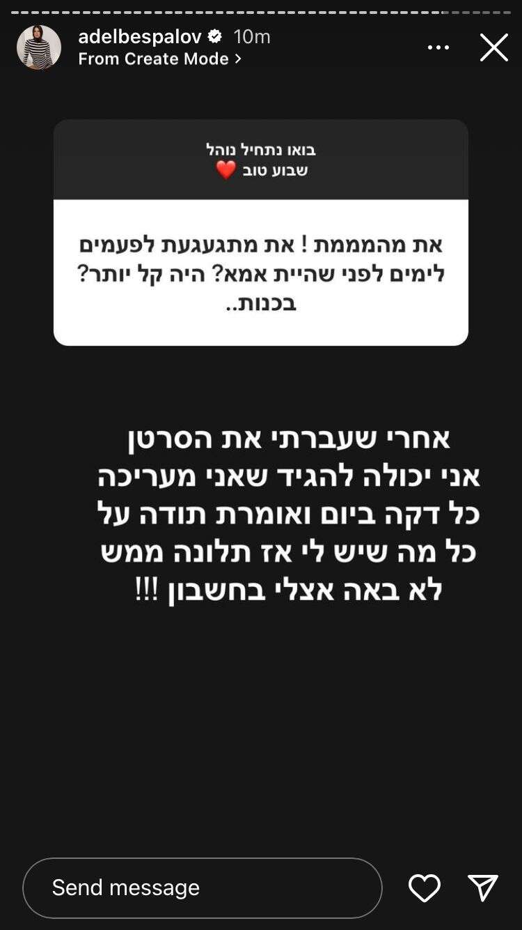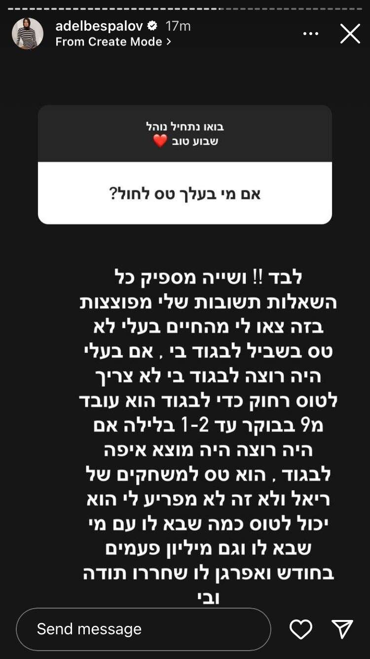 לא חוששת לענות. התשובה של בספלוב // צילום מסך מתוך אינסטגרם