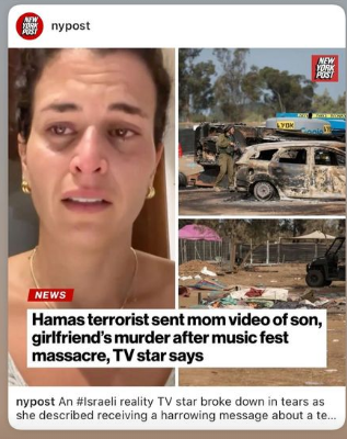בהמשך דבריה התייחסה לסטורי שהעלתה והתפשט ברחבי הרשת כמו אש בשדה קוצים עד שהגיע למערכות התקשורת הגדולות בעולם. "אני מקבלת תמיכה מכל העולם, הפוסט הזה הגיע לפוקס ניוז ולניו יורק טיימס ולכל מקום, וכנראה שגם הדברים האלה מזיזים אז זה לא פחות חשוב. אני מקבלת את כל ההודעות שלכם, הנה אני מהחמ"ל הביתי שלי, אני משתדלת להגיע לכל. תודה לכולם".