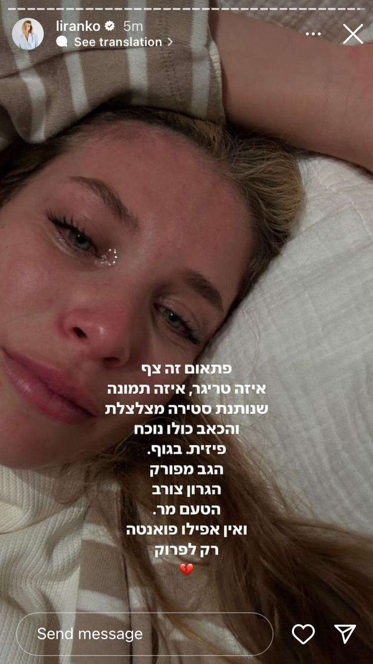 עוד בטרם יצאה לבילוי המדובר, שיתפה כוהנר בסטורי בתחושותיה המורכבות בימים אלה על רקע תמונה שלה פורצת בבכי. "פתאום זה צף. איזה טריגר, איזו תמונה שנותנת סטירה מצלצלת והכאב כולו נוכח פיזית בגוף. הגב מפורק, הגרון צורב, הטעם מר. ואין אפילו פואנטה, רק לפרוק", חתמה באימוג'י של לב שבור.