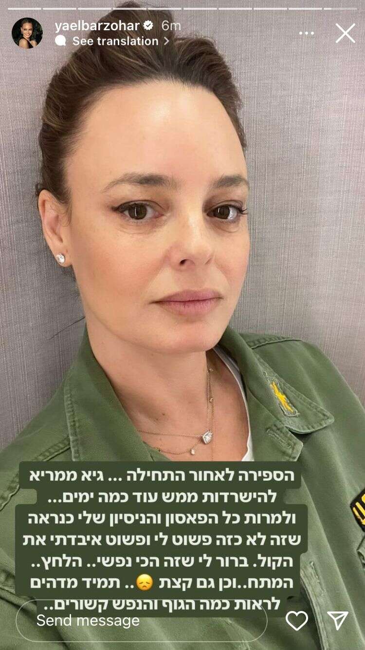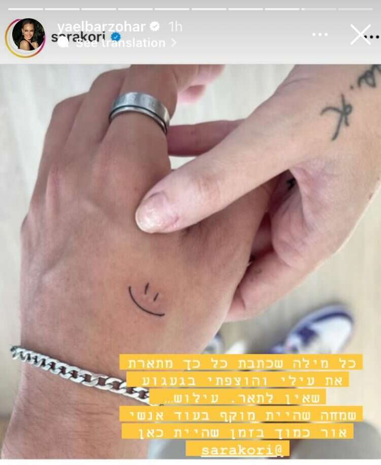 את סדרת הסטוריז המרגשת חתמה בר זוהר בסרטון של קורי בזמן שקעקעה אישה. "ראיתי את שרה המאסטרית בפעולה. ולא, זאת לא אני", הבהירה. "לי אין קעקועים, אבל אני ויהלי (בנה המתבגר של בר זוהר; י"ד) אמרנו שנעשה קעקוע משותף שמזכיר לנו את עילי, עדיין חושבים על רעיון".