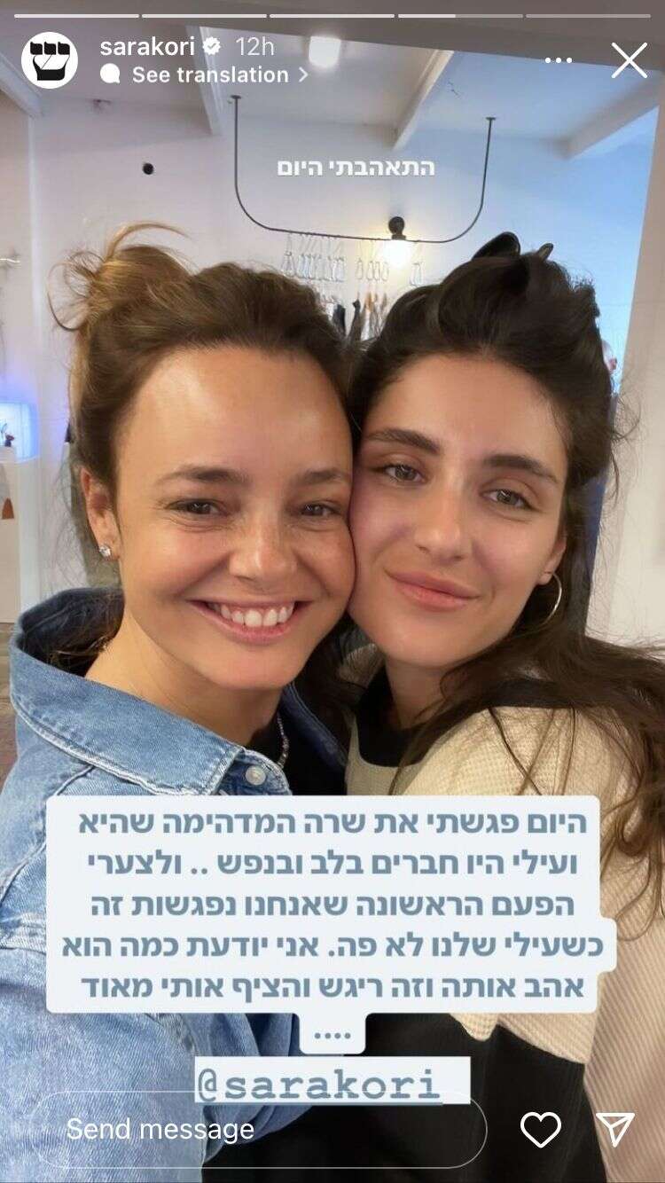 "פגשתי את שרה המדהימה, שהיא ועילי היו חברים בלב ובנפש. לצערי הפעם הראשונה שאנחנו נפגשות זה כשעילי שלנו לא פה. אני יודעת כמה הוא אהב אותה וזה ריגש והציף אותי מאוד", כתבה בר זוהר על רקע תמונה מחויכת שלה עם שרה.