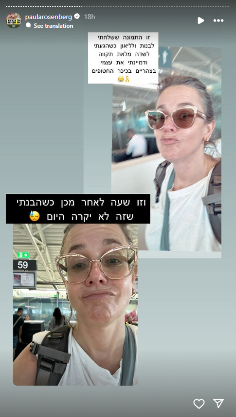 "אין גבול לגרידיות של חברות התעופה?" תהתה פאולה בזעם, ושיתפה תמונה של הבעת פניה המאוכזבת ששלחה לליאון ובנותיהם. היא הביעה את אכזבתה מכך שלא תוכל להגיע לכיכר החטופים כפי שתכננה.