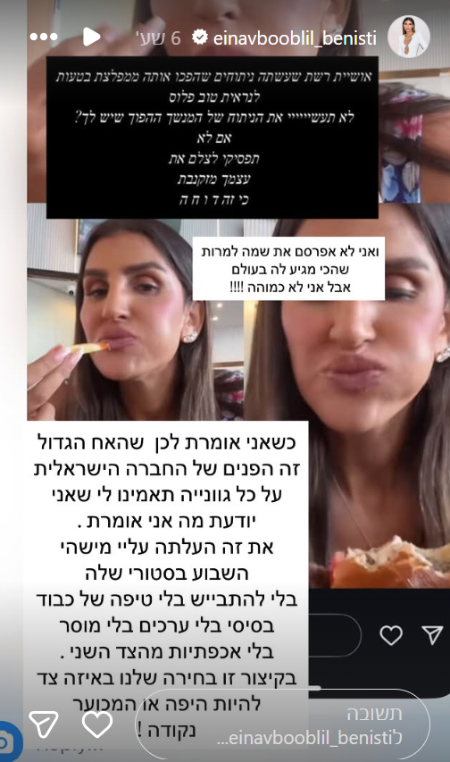 עינב בובליל נחתה מטיול משפחתי בדובאי ומיד התפנתה לעוקבות שלה כדי לשתף איתן עניין שפגע בה בדיוק בנקודה הרגישה שלה.