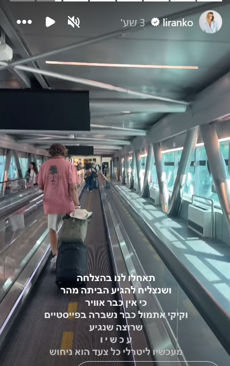 בינתיים, במאמץ לקדם את החזרה לארץ עד כמה שהם יכולים מהצד שלהם, לירן עדכנה כי היא וגיא שינו מיקום. "הבוקר מתקדמים מכאן" כתבה על רקע סרטון של האתר החדש אליו הגיעו. "מנסים לצמצם פערים לארץ, והאמת שיש אפס וודאות בהכל אז כל החלטה כזו זה הימור ומקווים שבוחרים נכון. תאחלו לנו בהצלחה ושנצליח להגיע הביתה מהר כי אין כבר אוויר וקיקי (אחת משלוש הבנות של לירן וגיא) אתמול כבר נשברה בפייסטיים שרוצה שנגיע עכשיו. מעכשיו ליטרלי כל צעד הוא ניחוש".