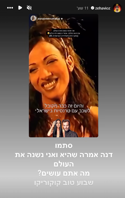 "עוז זהבי בראיון כן ואמיץ", כתבה דנה אינטרנשיונל בסטורי ששיתפה והוסיפה: "מעניין איך מכל הכתבה הארוכה והמרתקת הזו - על החיים, המשחק, הגירושין, עספור וכיו"ב, המשפט השולי בכתבה הפך להיות הכותרת הרועשת: "אני שוכב עם טרנסיות! בכל פעם מחדש זה מדהים אותי כמה הנושא הזה מעניין מרתק ומושך את בני האדם וכמה מעט מודים בזה. שבת שלום עוז - יצאת מלך", סיכמה ובסטורי נוסף שיתפה קטע קצר מראיון שלה לטלוויזיה הצרפתית משנת 1999 בו הכריזה: "לטרנסיות יש יותר סקס משאי פעם היה - זה נהיה דבר מקובל בישראל לשכב עם טרנסיות. "ני ואתה נשנה את העולם", כתבה לעוז. "עוז הוא החלוץ. אחריו יבואו כולם".