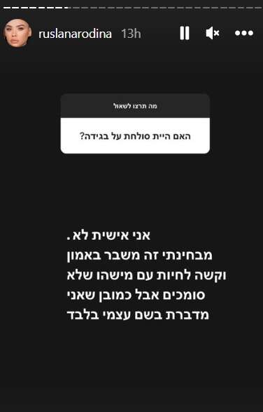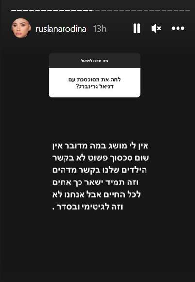 רוסלנה רודינה קיימה אתמול (שני) סדרת שאלות ותשובות עם מאות אלפי עוקביה באינסטגרם, ונדרשה להבהיר היכן עומדת מערכת היחסים בינה לבין דניאל גרינברג.