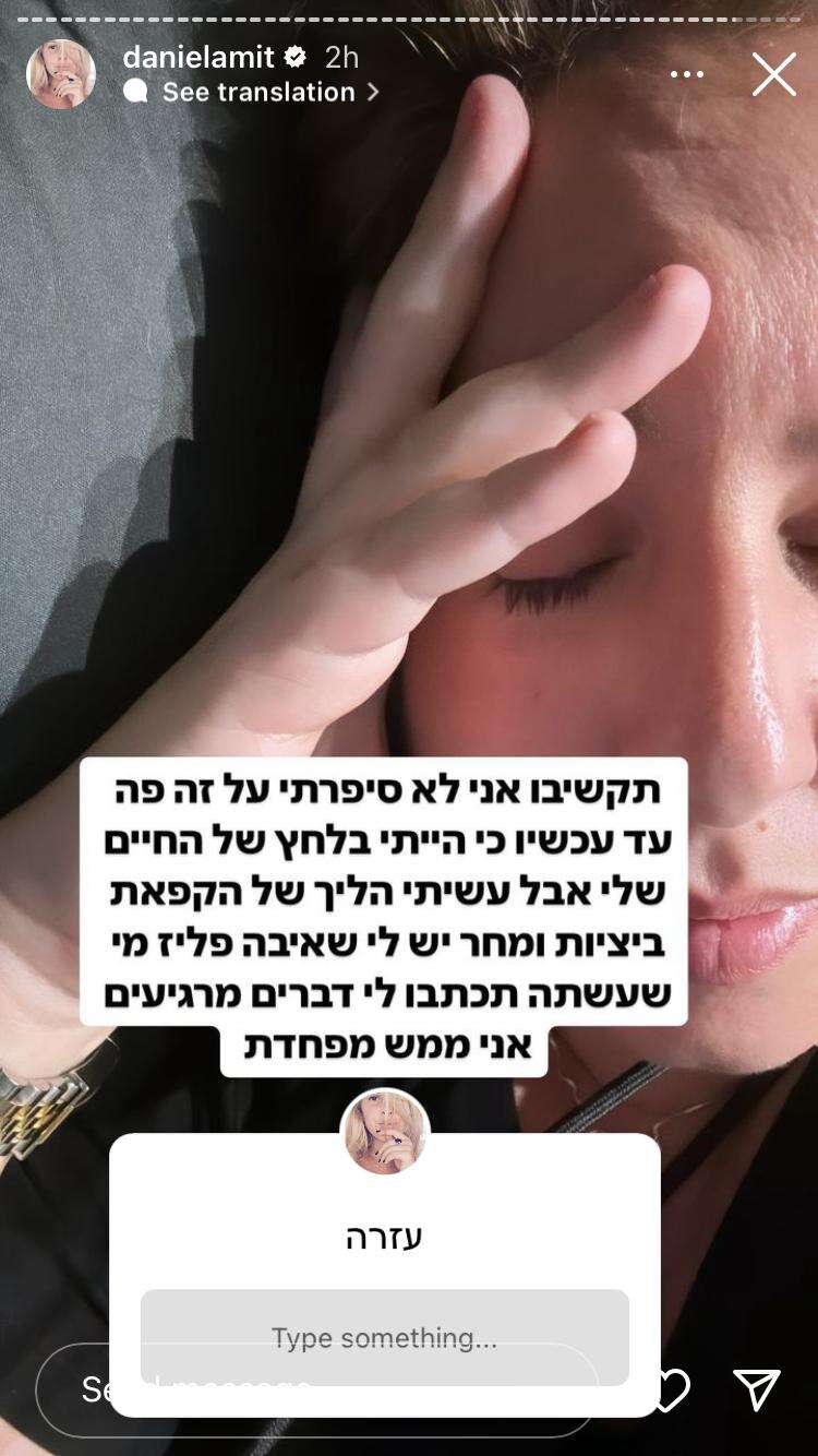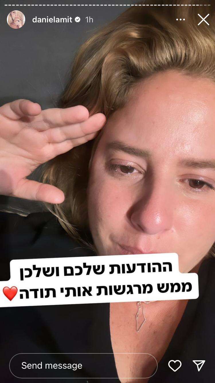"ההודעות שלכם ושלכן ממש מרגשות אותי, תודה. אני לא יכולה להסביר לכם כמה אני מתרגשת מכל הודעה. אני כל כך מעריכה את זה. בחיים לא תבינו כמה, אני נרגעתי קצת. כל מה שהיה בא לי לעשות קודם זה לפתוח את הסטורי ולבכות. כי ככה הייתי. באמת הרגעתם אותי. קיבלתי כל כך הרבה הודעות, ואני רוצה להגיד לכם שזה לא מובן מאליו. מעריכה כל הודעה שקיבלתי פה, כל כך אוהבת אתכם. אתם לא מבינים איך זה מרגש אותי ונוגע בי. אולי אני יצורה, אבל מה זה תודה, אני חולה עליכם".