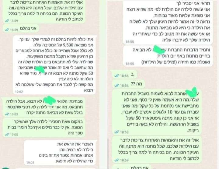 "נגיד שהיא חולה, לא כזה עניין". מתוך ההתכתבות בין האימהות / צילום מסך