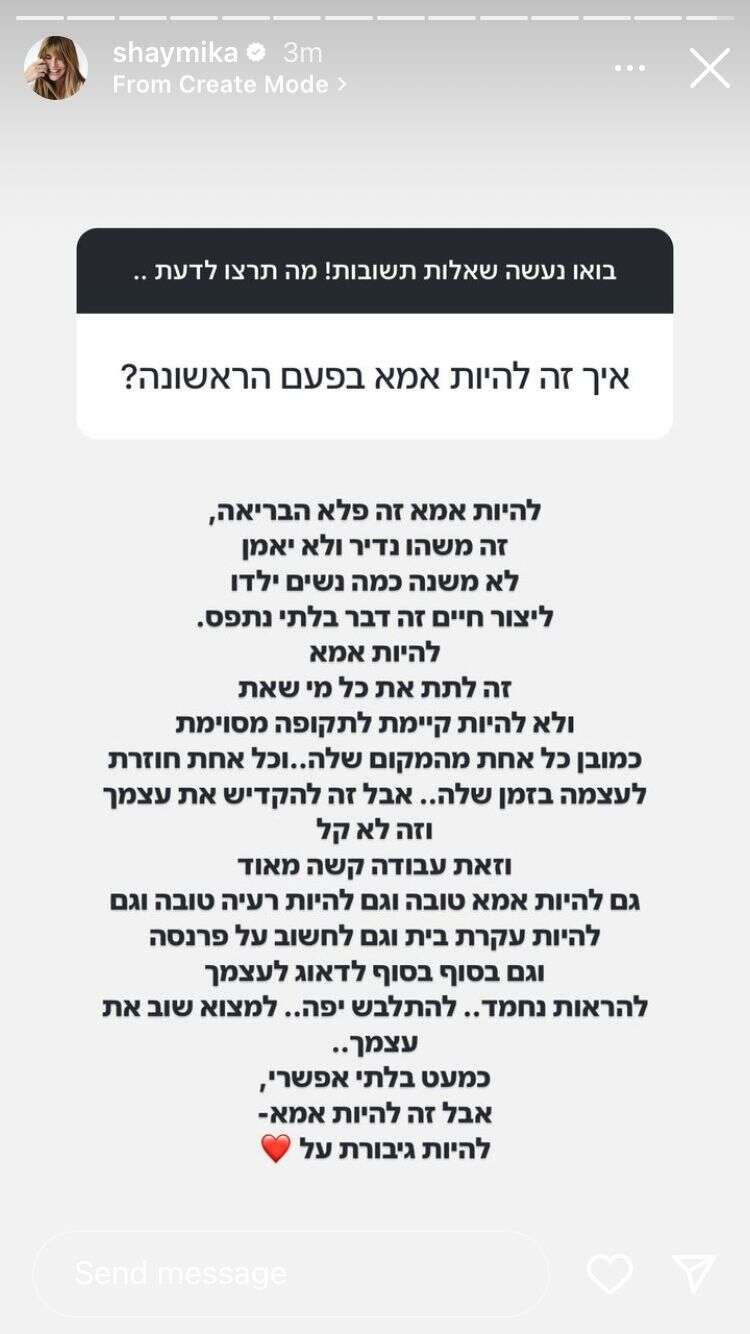 "להיות אימא זה לתת את כל מי שאתה". הסטורי של שי מיקה // אינסטגרם