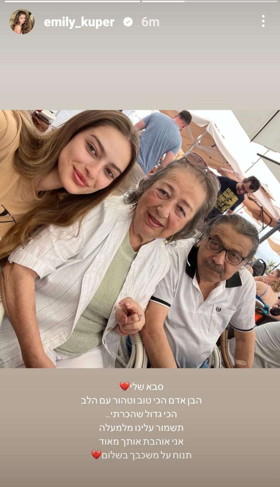 "השתדלתי כמה שאפשר לשים את הרגש בצד. הצטלמתי הכי טוב שיכולתי וברגע שסיימתי התפרקתי", חתמה את הסטורי כשהיא משתפת בתמונה שלה לצד סבה המנוח.