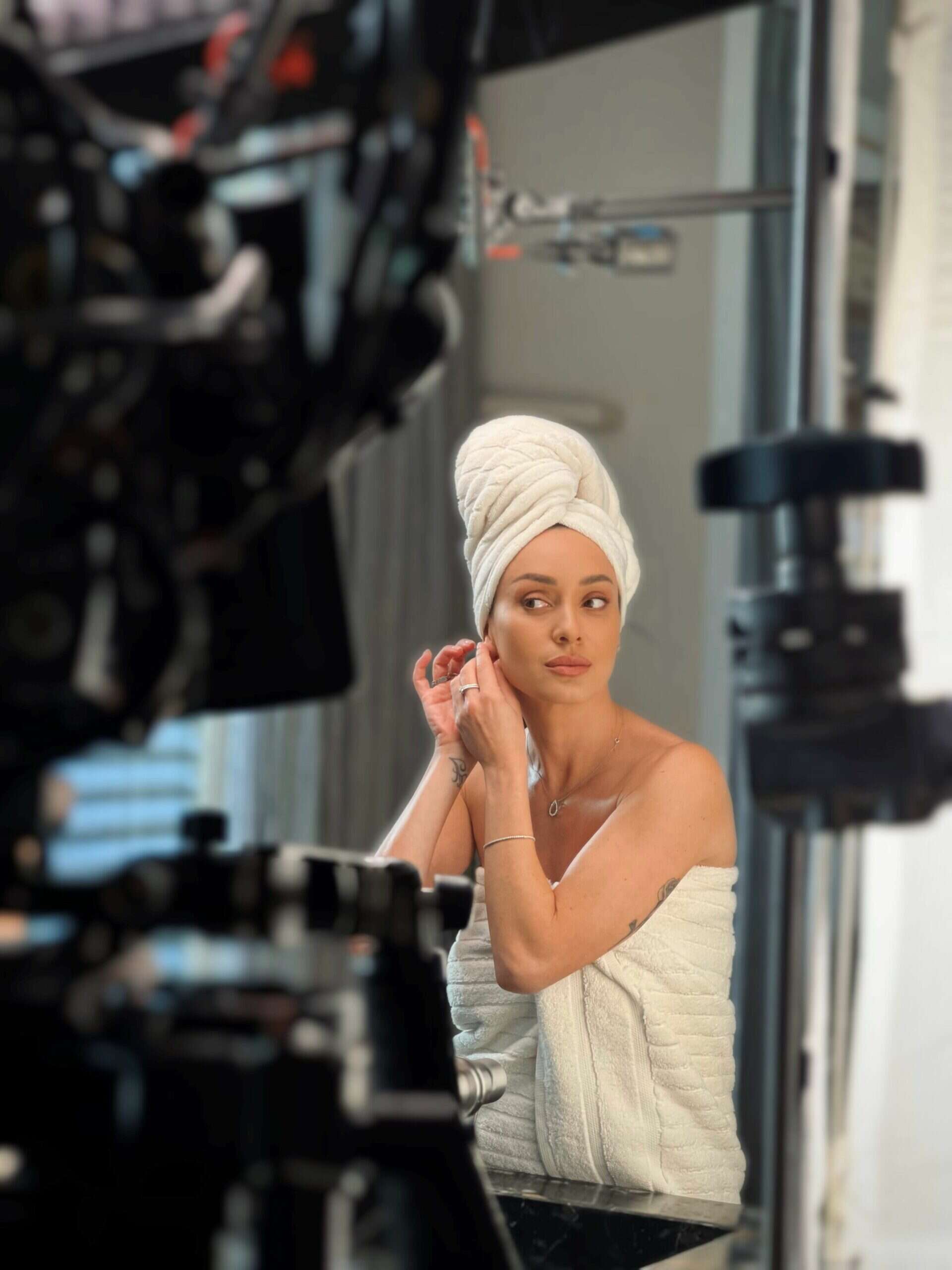 בשיחה עם ארונוב על הסט, היא משתפת בהתלהבות על הקולקציה: "יש קושי מאוד גדול לצלם תכשיטים כי כל דבר ששמים עליי בא לי וזאת בעיה". כשנשאלה על טיפים לזוגיות ומתנות, היא מציעה עצה מניסיונה: "אין רמזים, גברים לא מבינים רמזים. הינה אני נותנת טיפ לכל הנשים - אתן רוצות משהו? פשוט תשלחו לינק ישירות. אני בת 43 והבנתי שגברים לא מבינים רמזים".