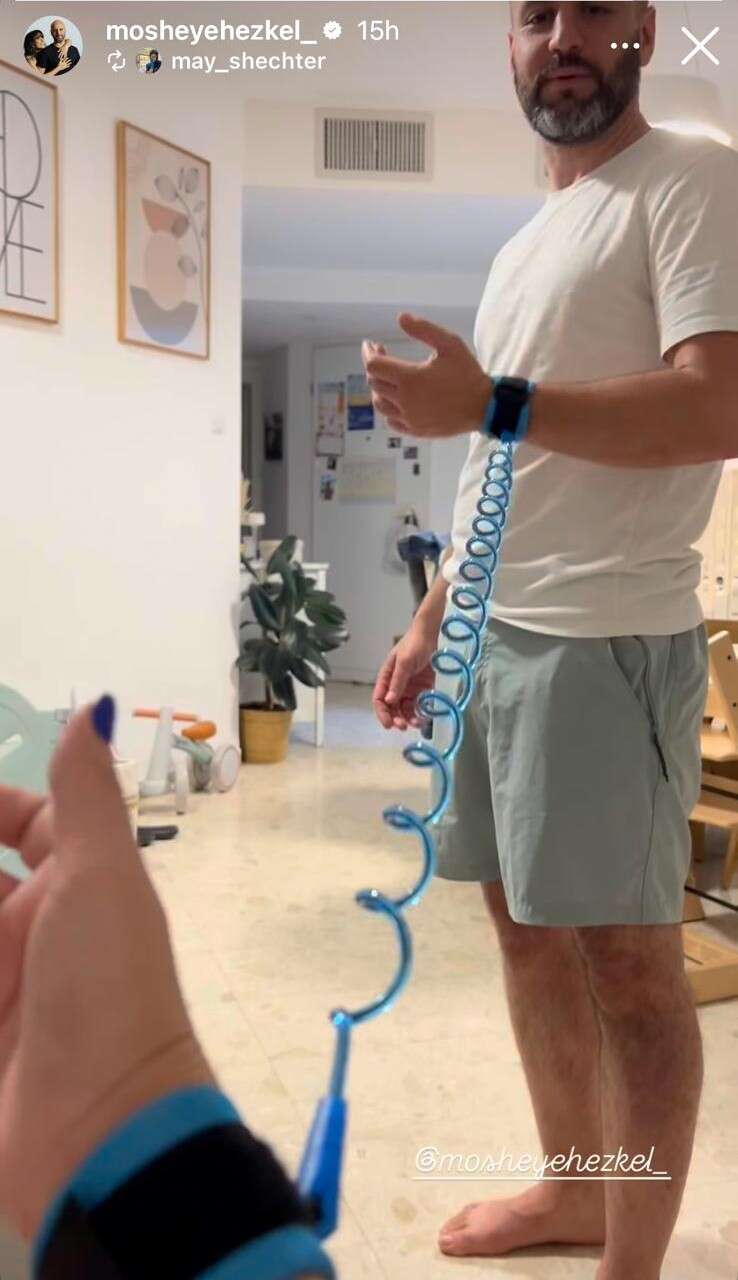 בהורות, כמו בזירת הדייטים של תל אביב, הכל עניין של שליטה או לפחות אשליה שלה. היום (חמישי), משתתפי העונה החמישית של "חתונה ממבט ראשון" מאי שכטר ומשה יחזקאל סיפקו לנו את מנת הדרמה היומית: הוא קשר את עצמו אליה ברצועת ילדים כחולה, היא גלגלה עיניים כאילו הרגע הציע לה לצאת מהבית בטרנינג עם שאריות אוכל מהצהריים של בנם הקטן עדי, וכמובן שכל המאורע תועד בסטורי לטובת עשרות אלפי העוקבים שלהם באינסטגרם.