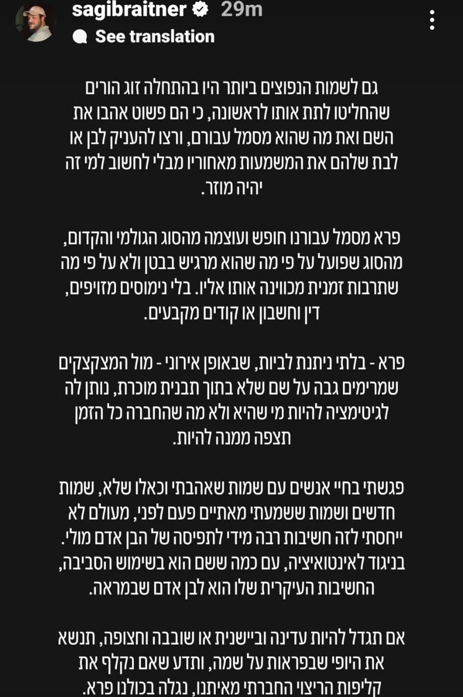 "גם לשמות הנפוצים ביותר היו בהתחלה זוג הורים שהחליטו לתת אותו לראשונה כי הם פשוט אהבו את השם ואת מה שהוא מסמל עבורם ורצו להעניק לבן או לבת שלהם את המשמעות מאחוריו מבלי לחשוב למי זה יהיה מוזר", פתח את הסטורי כשהוא מתייחס בין השורות ככל הנראה לכל אותם מגיבים שבחרו לפרגן פחות לשם הלא קונבנציונלי.