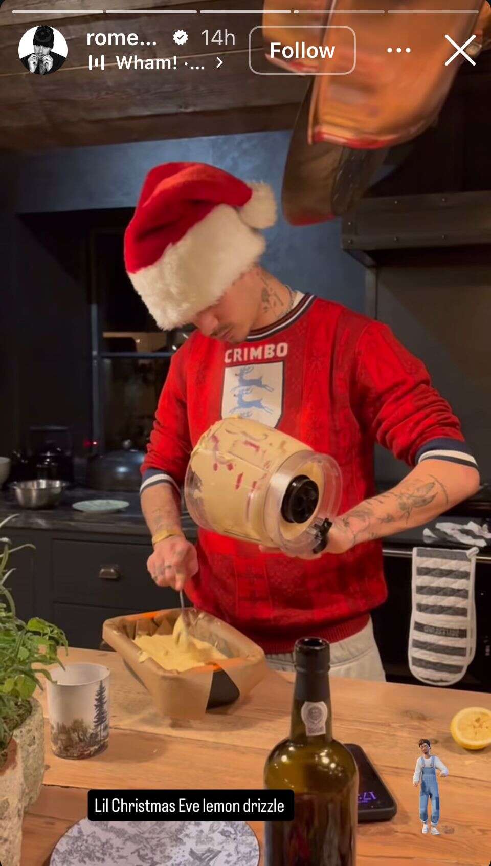 בתמונות אחרות, נראה שהבן קרוז הכין קוקטיילים, בעוד שרומיאו הכין עוגת לימון בזיגוג. בתמונות ששיתף בעצמו, הוא נראה מכין עוגה ויושב על השיש במטבח עם כוס יין אדום. חברתו של רומיאו, ג'קי אפוסטל, הצטרפה לחגיגות המשפחתיות.