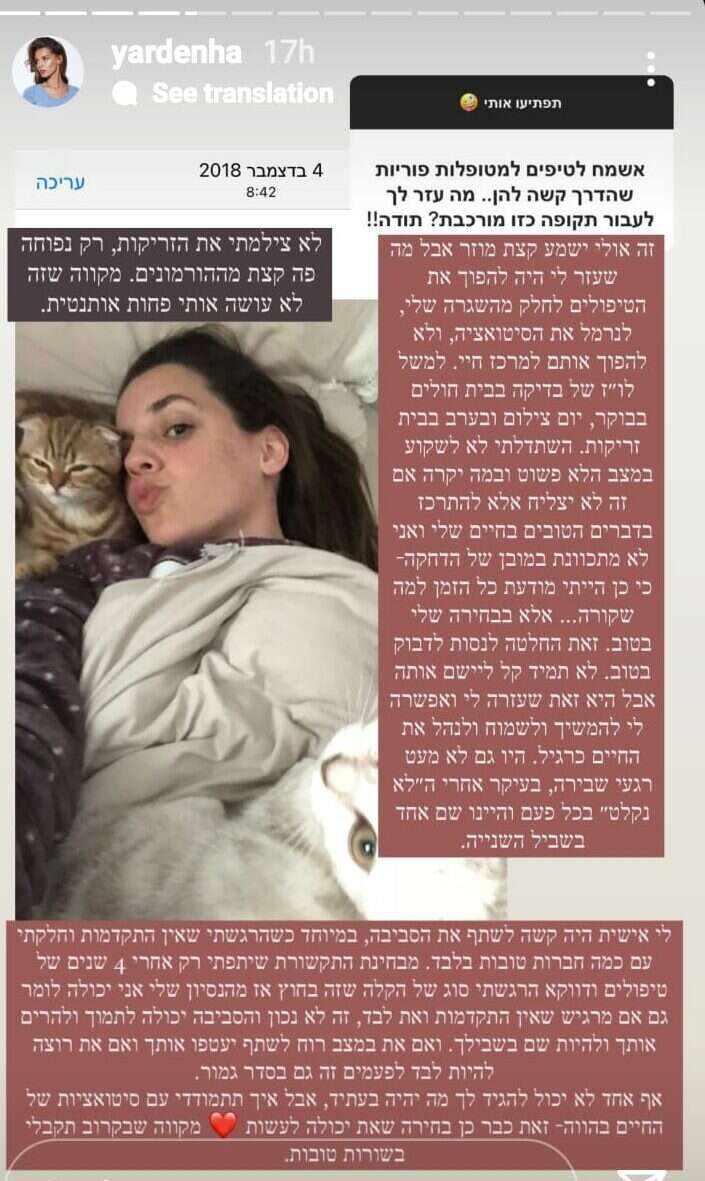 ירדן הראל מעדיפה לרוב להימנע מלשתף ברשתות החברתיות פרטים אינטימיים מחייה, אך היא נפתחה בסשן שאלות ותשובות באינסטגרם בפני 399 אלף עוקביה, ושיתפה אותם בטיפולי הפוריות והליך הפונדקאות שעברה עם הגרוש עומרי שלום לפני כשנתיים.