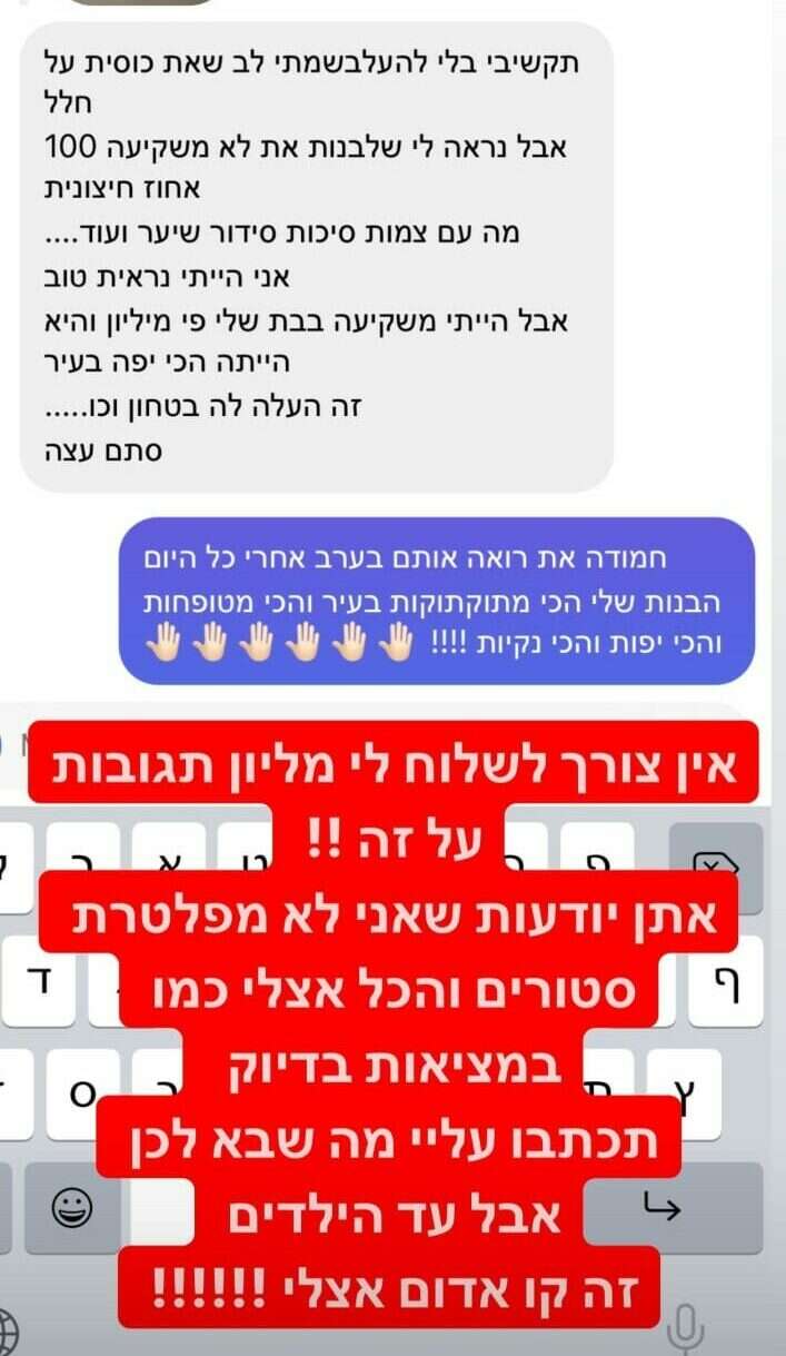 "בלי להעליב", כתבה לה הגולשת, "שמתי לב שאת כוסית על חלל, אבל נראה לי שבבנות את לא משקיעה 100% חיצונית. מה עם צמות, סיכות, סידור שיער ועוד?", כתבה. "אני הייתי נראית טוב, אבל הייתי משקיעה בבת שלי פי מיליון, והיא הייתה הכי יפה בעיר. זה העלה לה בטחון. סתם עצה".